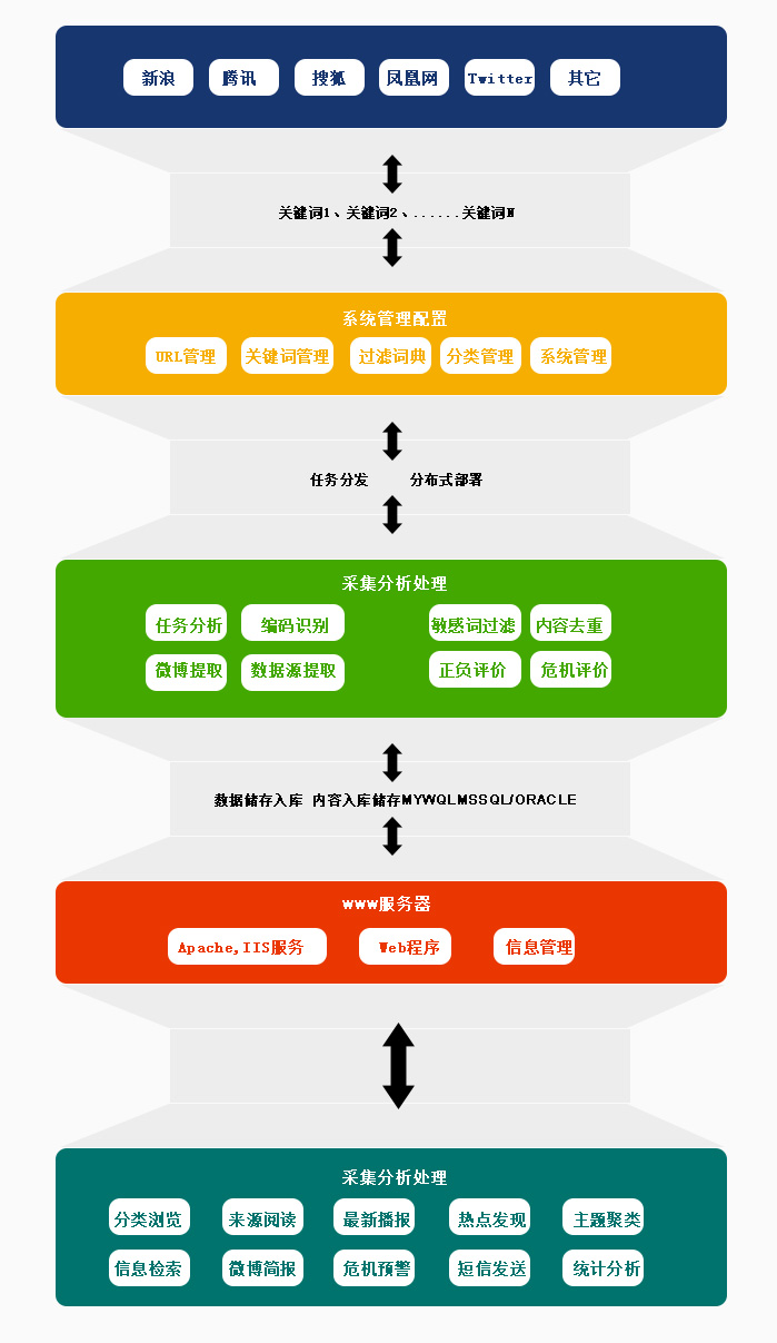 采用WWW、WAP、短信、邮件相结合的综合服务模式,突破时间和空间局限,随时把握舆情动态,打造高效的预警机制。